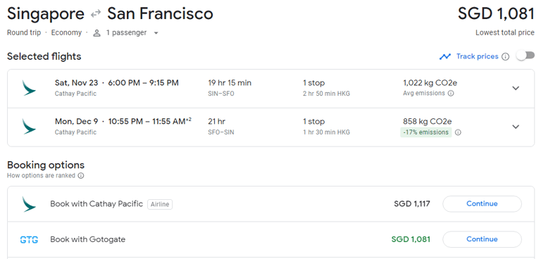 This enabled me to book a return flight to San Francisco for just a sum of 970.10SGD.