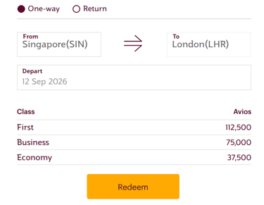 Fast forward to 12 September 2026, Singapore to London Heathrow still only costs 75000 miles.