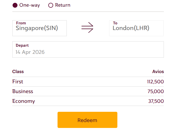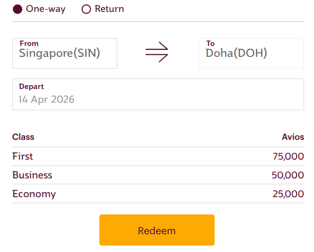On the other hand, a Regular (Off-Peak) award for Singapore to Doha will cost 50000 miles. Take note that the departure for both flights are on 14 April 2026.