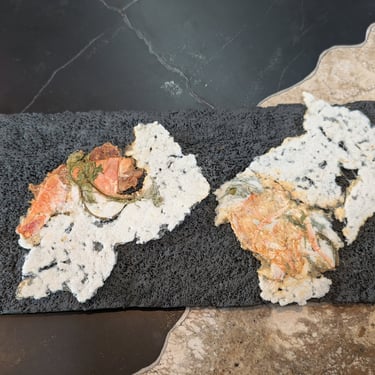 'Dry valley' was served next, consisting of a squash, dried shrimp cracker, and avocado. The squash (the cup with liquid dusted in black powder) is a very shrimp reduction. Some people may find the flavour of the squash to be too intense. The shrimp cracker consists of shrimp shells made into a cracker. The cracker wasn't crispy, but it was enjoyable chewing on it. There's nothing mind-blowing about the avocado.