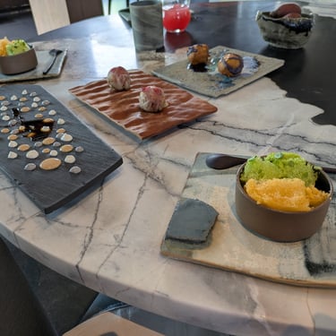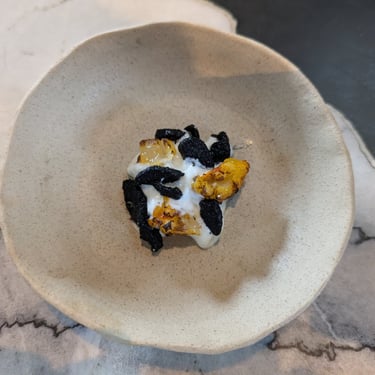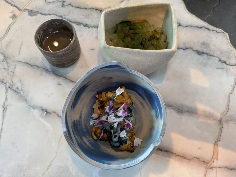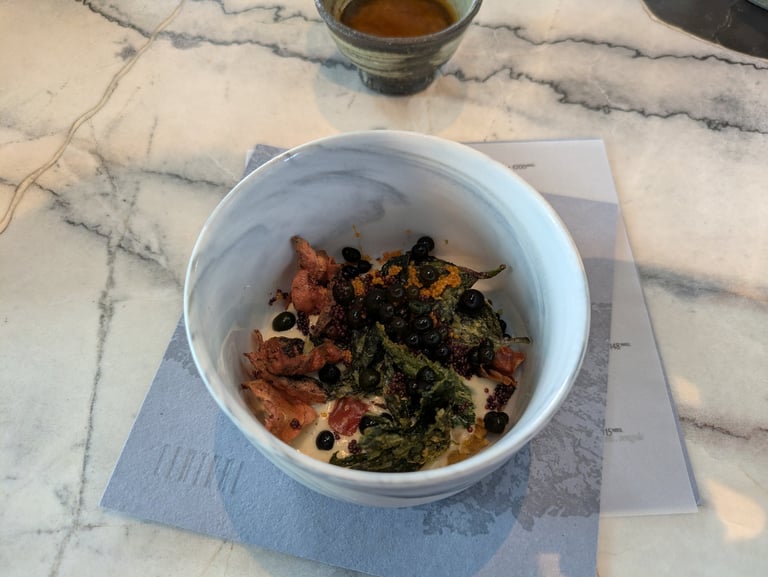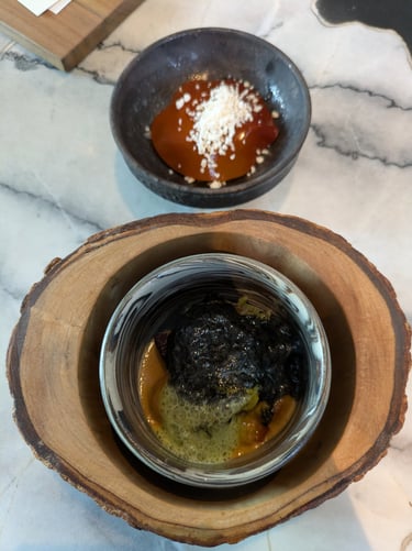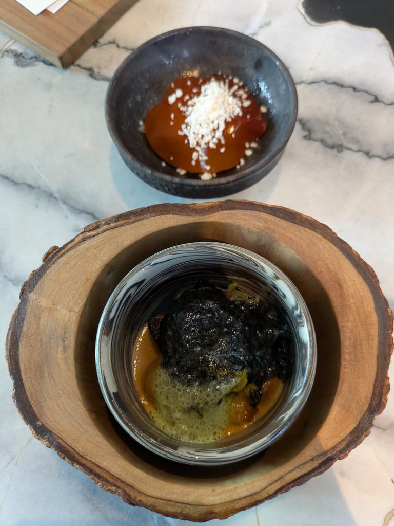 'Mil Moray' was complicated. The first dish with the white and black shavings was passable. The two different shavings had similar textures and taste, so I'm not sure what's the point in using two different shavings. There was something like a yogurt at the bottom, but the dish was not memorable.