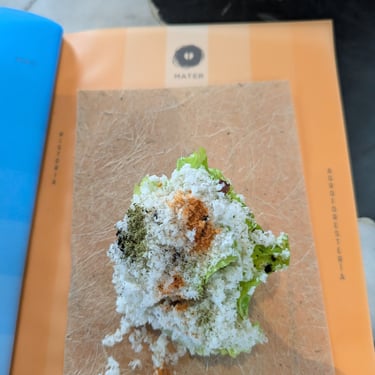 At this point, I'm no longer sure about what I'm tasting. 'Amazonian water' was served next, and the dish containing the black noodles was rich, but the taste was just okay. It wasn't fishy but I just can't describe the flavour. The lettuce wrap was difficult to eat. Given how thin the wrap was, it felt like the wrap was about to burst any time. There were many different textures at play in the wrap, from the crunchy lettuce, to the powdery white 'dust', but the wrap just wasn't tasty.