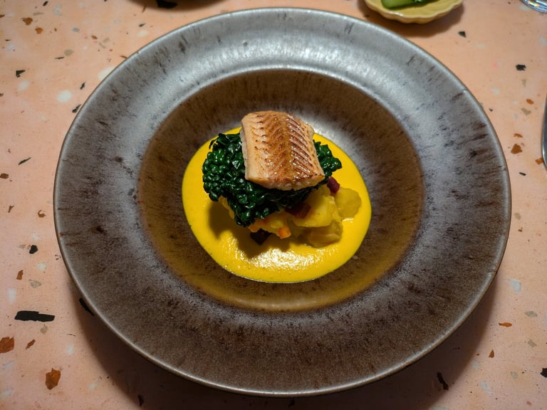Sinasir, the rice cake dish, was probably my favourite of the two. The rice cake was soft and tender, and acts as a vessel for the other stronger flavours of the butternut squash, and pickled chilies to shine. The kale adds a nice crunch to the otherwise soft rice cake, and this amalgamation of textures was well-appreciated. The candied nuts also bring a nice hint of sweetness to the dish.