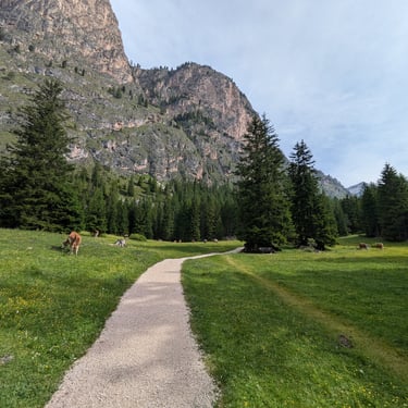 The Vallunga is a small valley that branches off the famous Val Gardena. When I was there in the morning, there were few people there, and it was great enjoying a peaceful stroll in the valley while enjoying the company of the animals.