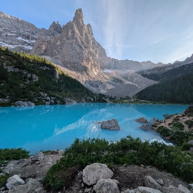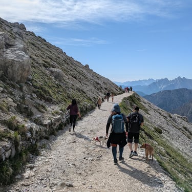 Lake Sorapis is easily the most challenging hike mentioned here. Park your car at the trailhead here; you will be required to parallel park along the road, so if that's too challenging for you, an alternative is to stay at B&B HOTEL Passo Tre Croci Cortina where you can just leave your car at the hotel's carpark and walk over to the trailhead.