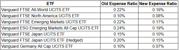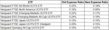 The changes are nothing to shout about for the most part, but the Vanguard FTSE Emerging Markets UCITS ETF caught my eye as the reduction in fees has made it the cheapest Emerging Markets ETF in the market.