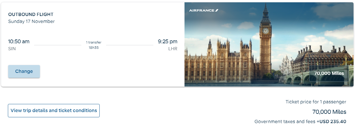 In addition to the competitive pricing, Air France/KLM, as major European airlines, can fly you to all the European destinations that you can think of. This is unlike redeeming an award on SIA or Qatar where you are restricted by their European network. If you want a flight to Stavanger? KLM will get you there. If you want a flight to Nantes, Air France will take care of it.