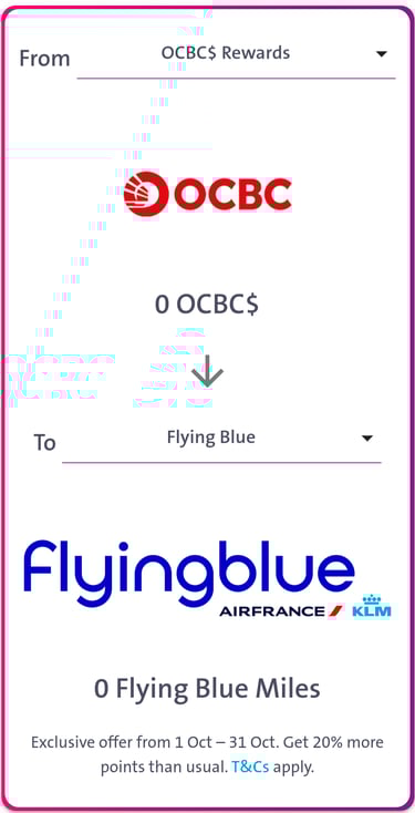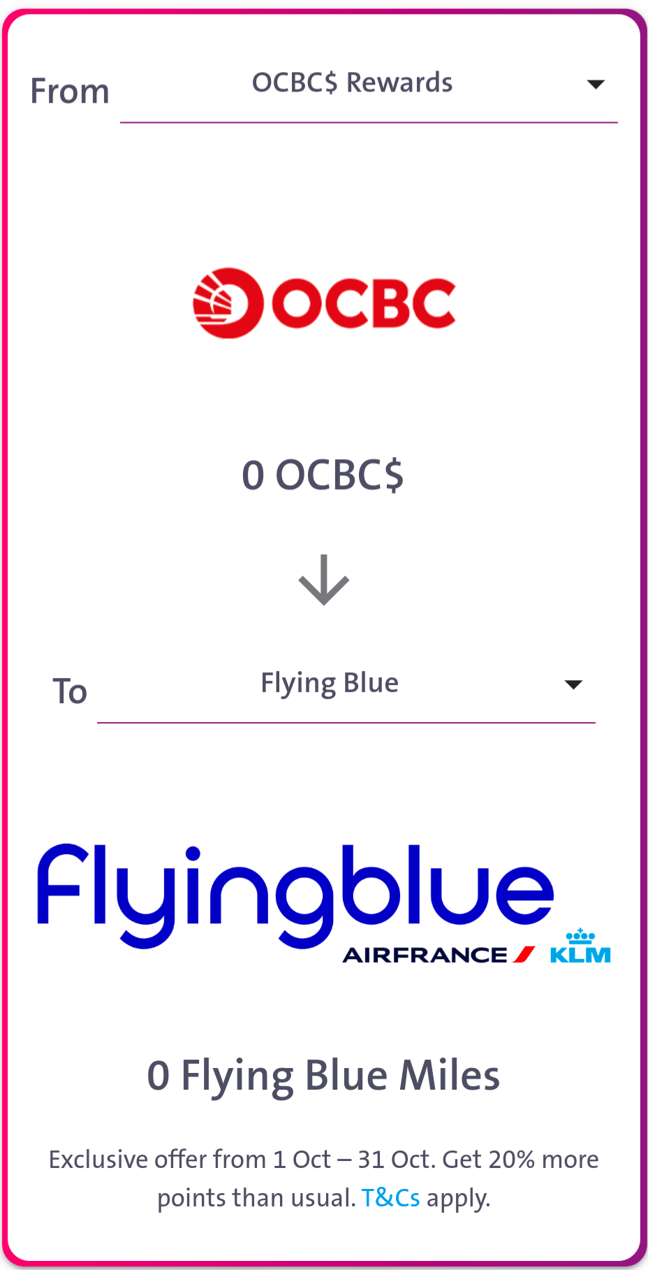 Flying Blue is offering a 20% transfer bonus for the month of October. If you have HSBC or OCBC cards and are looking to redeem flights to Europe or select destinations within Asia, why not consider taking advantage of this transfer bonus?