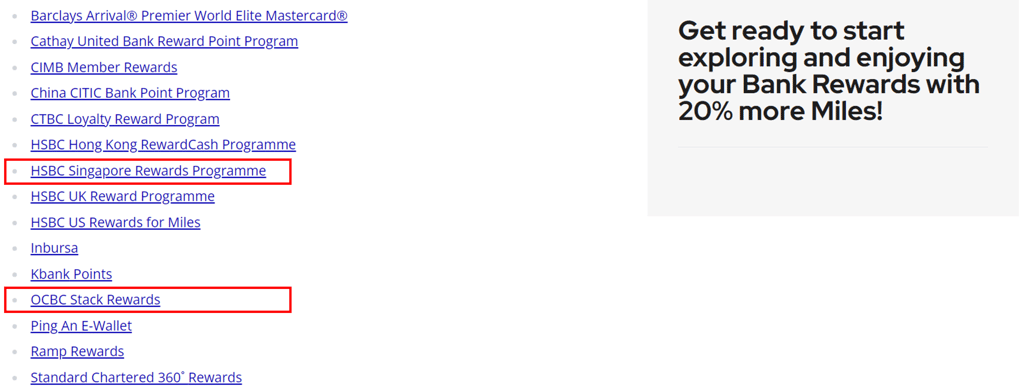 This is a global transfer bonus promotion, but for Singapore-based members, you'll be delighted to know that HSBC and OCBC are participating in it (circled in red).