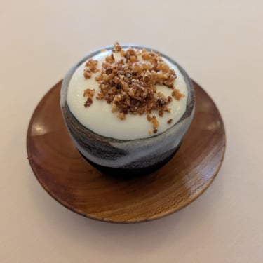 I didn't have to wait too long after I finished my main before dessert was served. I applaud the chef for adding szechuan pepper to a dessert dish. You will experience two kinds of numbness here; one from the cold parfait and the other from the szechuan pepper. I was worried that the taste of szechuan pepper will overwhelm the dish, but no, the szechuan pepper adds just a nice scent while numbing your tongue slightly as you taste it. This has to be the most delicate and technical use of szechuan pepper I have seen.