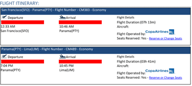 Fortunately, or unfortunately, there are no direct flights from San Francisco to Lima (capital of Peru). I opted for the cheapest flight that I could get my hands on, and will be travelling on Copa Airlines, stopping over at Panama.