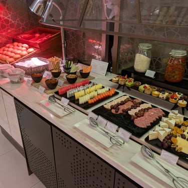 The lounge offers ala carte dining, with menus available online. If you are in a rush, there's a buffet serving mostly cold cuts, salad and bread that may satisfy your hunger.