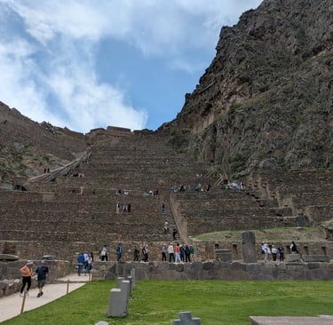 After a delicious buffet lunch, our guide took us to Ollantaytambo. Ollantaytambo is a village in Sacred Valley, set on the Urubamba river. The Ollantaytambo ruin is a massive Inca fortress, and just like most of the Inca sites, the ruins here feature large stone terraces on a hill.