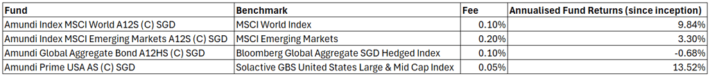 MoneyOwl has more information on the four funds, but I've summarised the key information in the table above.