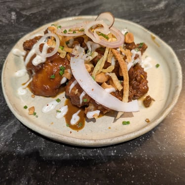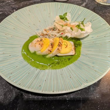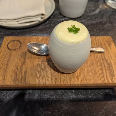 Skosh is a small plates restaurant, serving contemporary British cuisine with international influences. I had the 'hen's egg', Skosh fried chicken, hand-dived scallop, and the 'lemon top'.